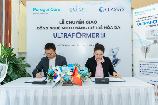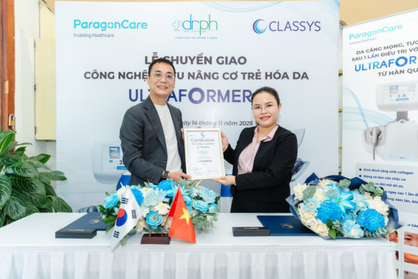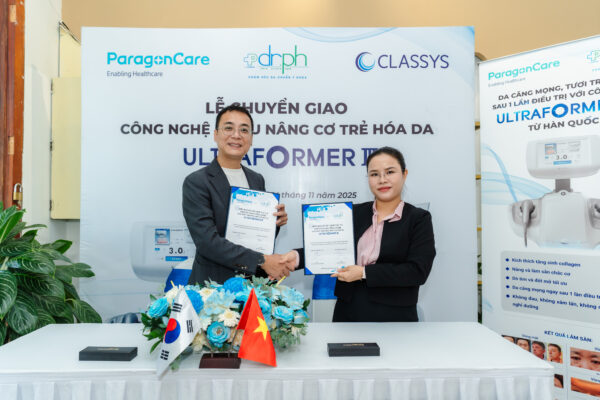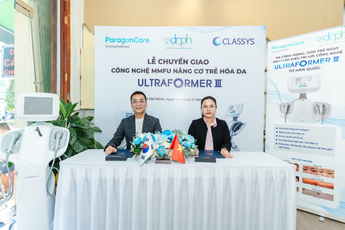 Ngày 14/11 vừa qua, đã diễn ra lễ chuyển giao công nghệ Ultraformer III giữa Bác sĩ Võ Thị Phương – Đại diện Dr. PH và ông Nguyễn Quang Dương – đại diện công ty TNHH Paragon Care Việt Nam.
